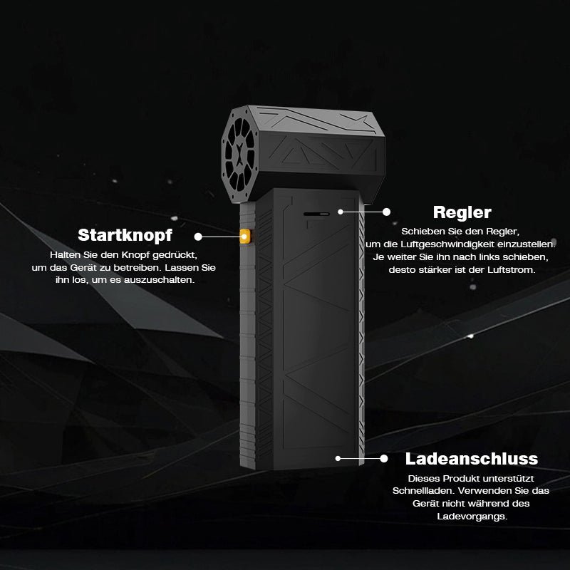 Leicht und tragbar mit einstellbarem Luftstrom. Perfekt für Zuhause oder unterwegs, auch geeignet für kleine Gegenstände wie Kissen oder Tastaturen.